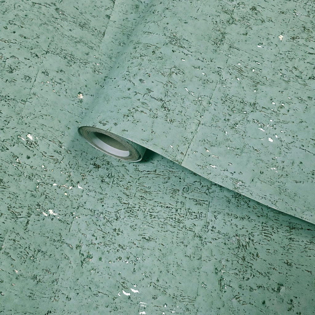 WM017KCS Real natural cork matte mint green silver metallic textured eco modern Wallpaper