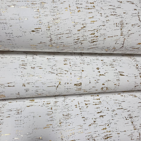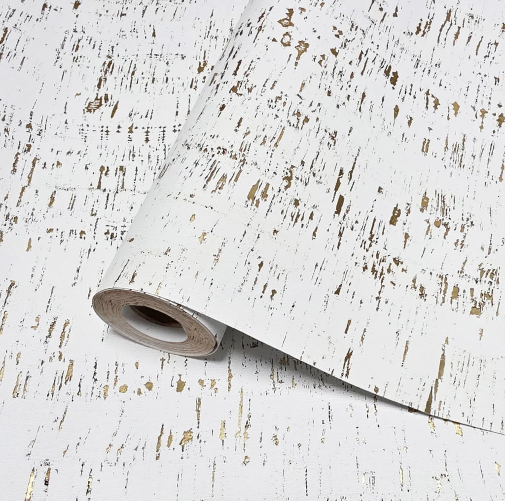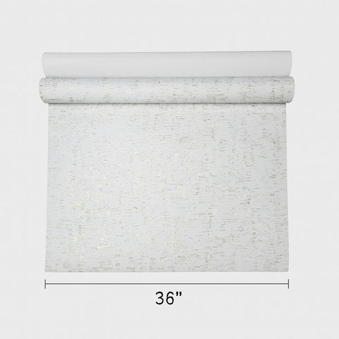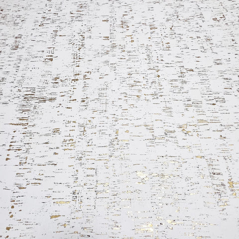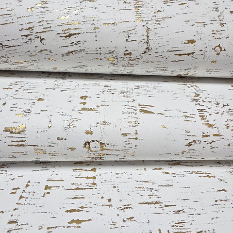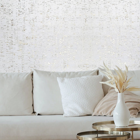 WM100101SMC Enchanced natural cork matte white gold metallic foil birch textured Wallpaper