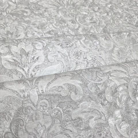 Z10917 Embossed grayish off white cream plaster textured Victorian damask Wallpaper 3D
