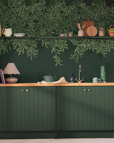Wallpaper The Sage & Duck Egg hue of William Morris's At Home Acanthus wallpaper has a traditional Acanthus design with a non-woven leaf pattern. It is renowned for its classic, creative style, which embodies the Arts and Crafts movement's legacy.