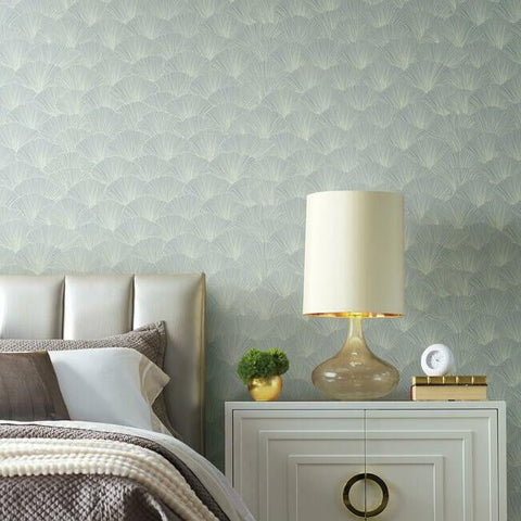 CI2338 Luminous Ginkgo Mist Blue Wallpaper