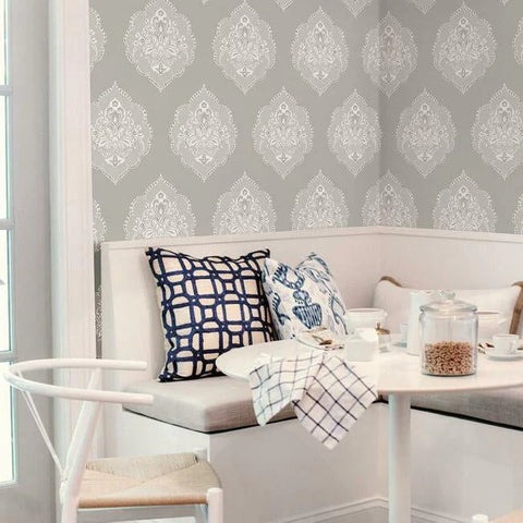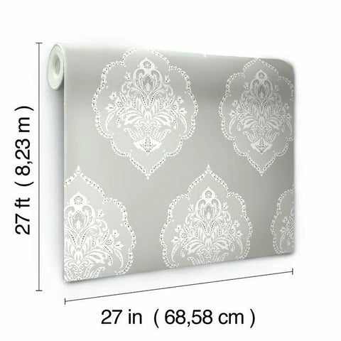DM4984 Signet Medallion Damask Grey Wallpaper