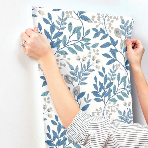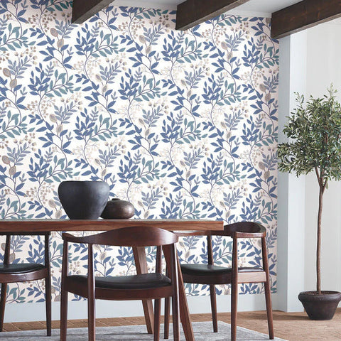 MN1842 Eden Retreat Blue White Glint Wallpaper