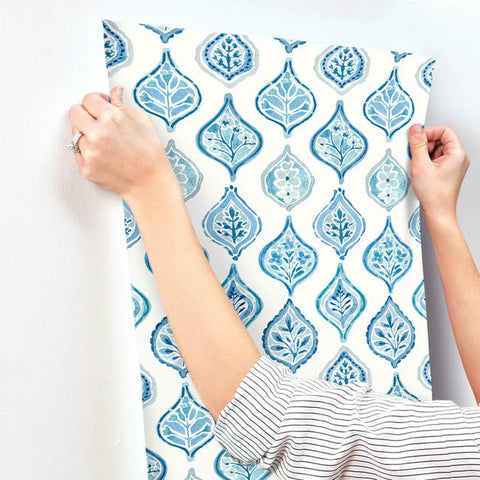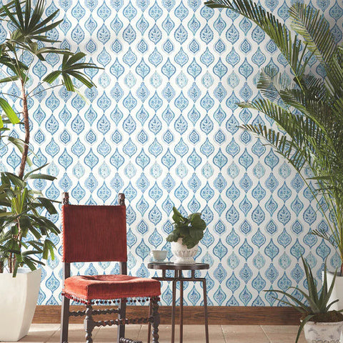 MN1850 Marketplace Motif White Blue Wallpaper
