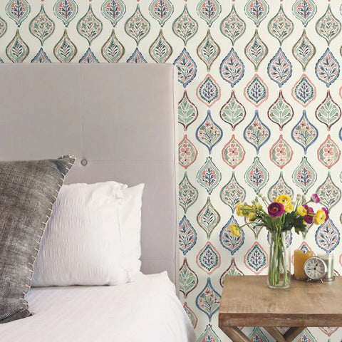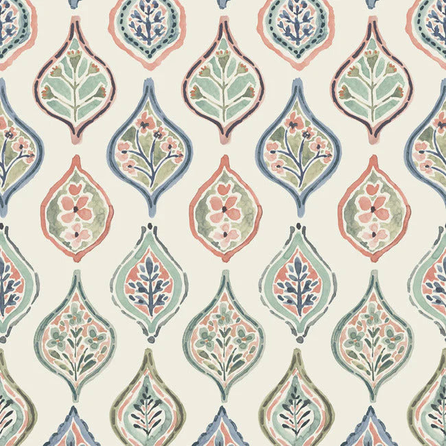 MN1853 Marketplace Motif Almond Mint Apricot Wallpaper