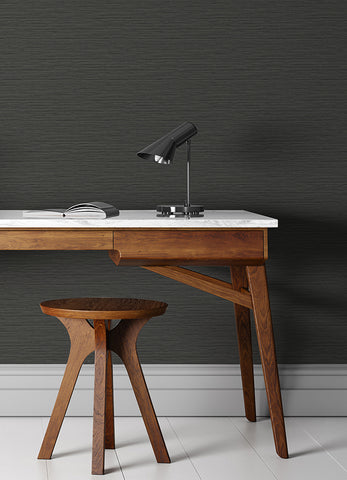 2988-70310 Rushmore Black Faux Grasscloth Wallpaper