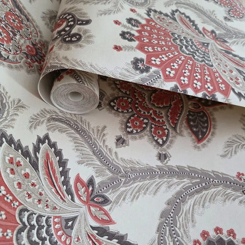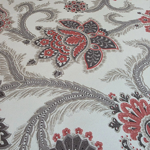 CB10800 Off white red gray flowers giacomo Bohemian Monarchos Paisley floral wallpaper