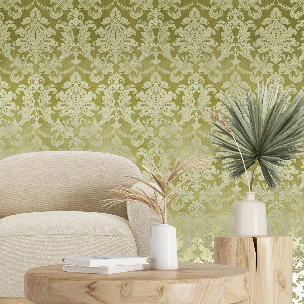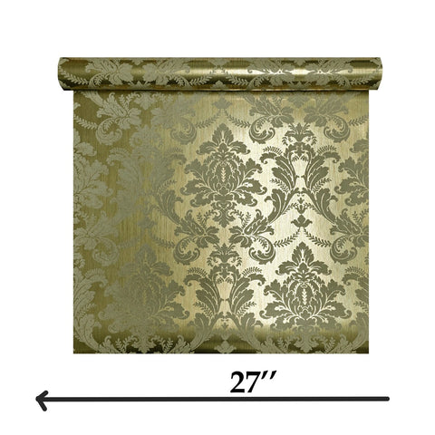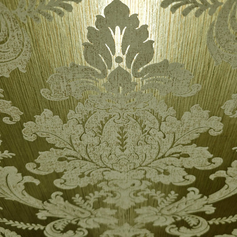 CB53805 Egerton Yellow foil gold metallic Acanthus Leaves damask Victorian wallpaper 3D