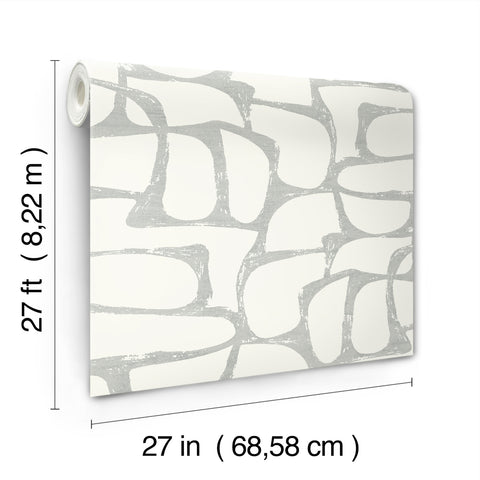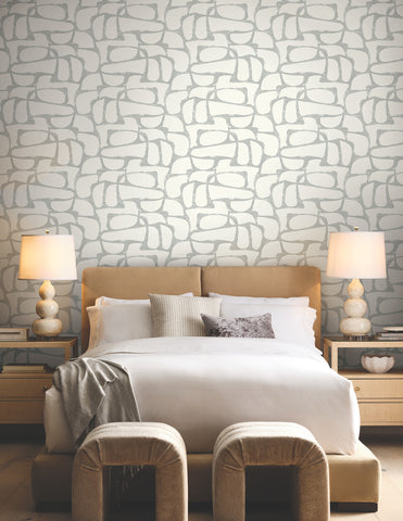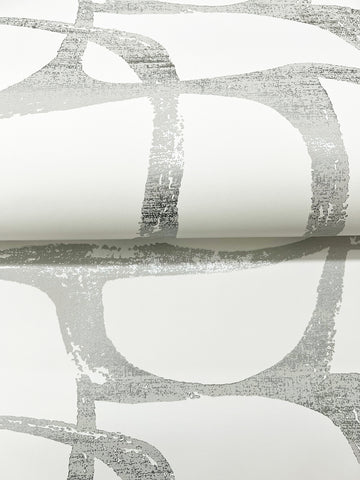 DF3356 Craftsman Geometric White Silver Wallpaper