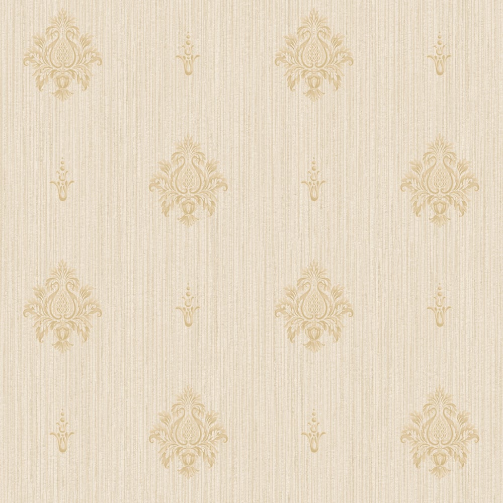 The opulent appearance of embroidered silk is achieved by spreading a tiny, delicate damask design over a genuine vertical linen-style weave.