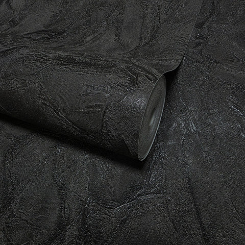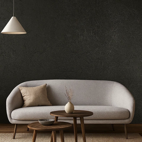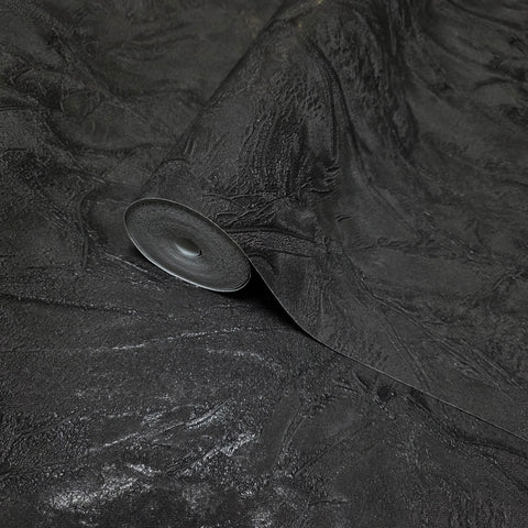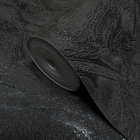 Z34928 Plain Dark gray black Charcoal Faux concrete plaster Textured modern Wallpaper