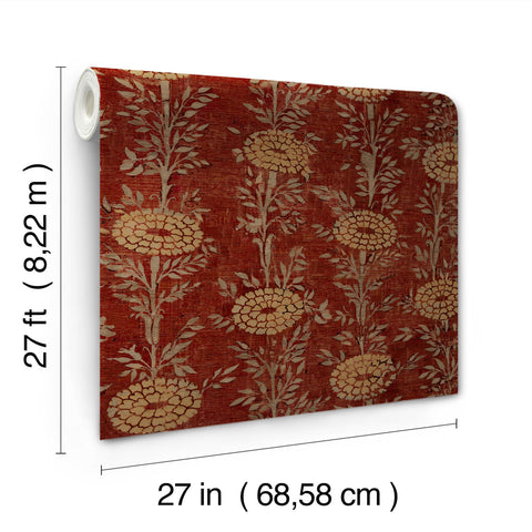 As seen here in pink and green on ivory, Kimora's Garden's blossoms, trees, and birds form a sumptuous depiction of garden magnificence that is preserved on an impression of old linen.