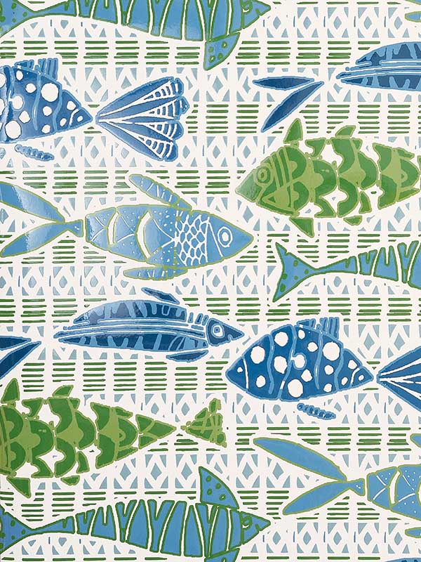 T15870 Batik Fish Blue and Green Wallpaper