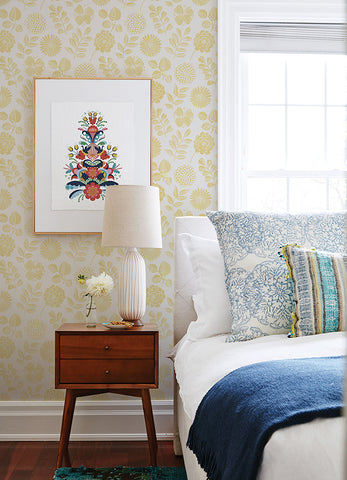 4066-26530 Inge Yellow Floral Block Print Wallpaper