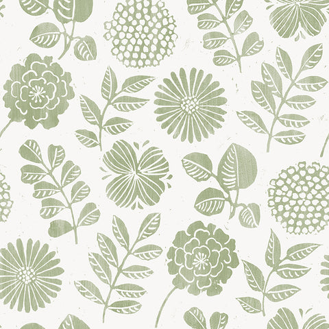 4066-26531 Inge Moss Floral Block Print Wallpaper