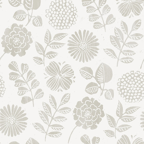 4066-26533 Inge Light Grey Floral Block Print Wallpaper