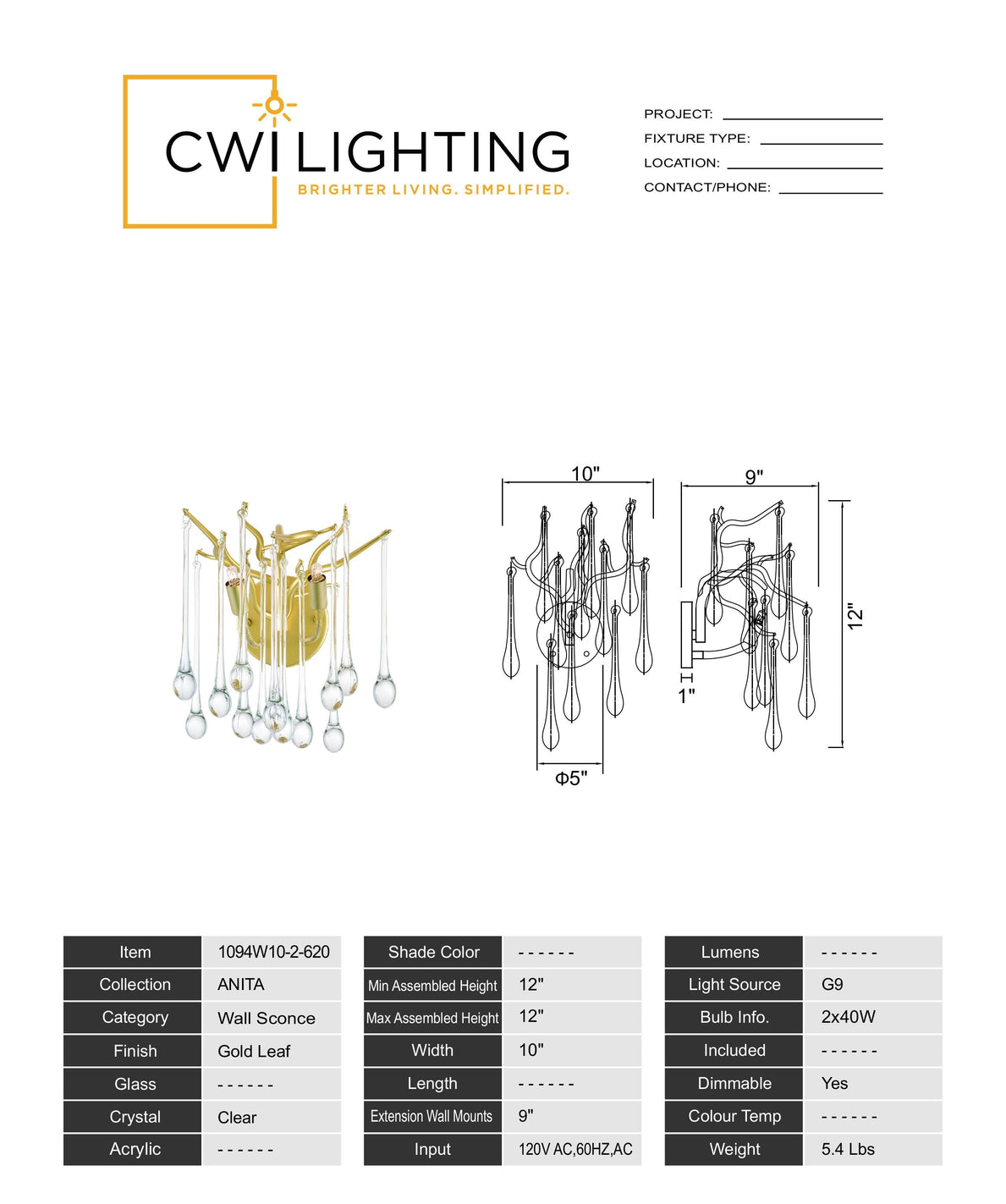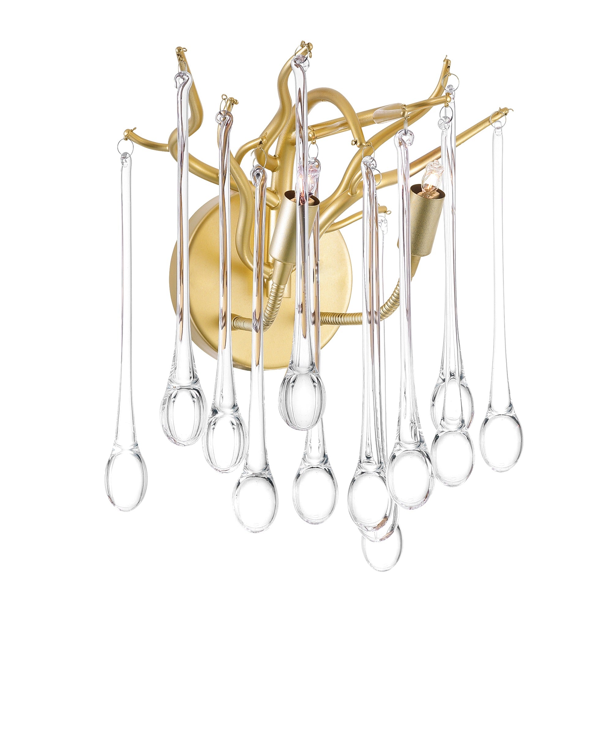 This elegant and whimsical Anita 2 Light Wall Sconce would beautifully adorn an uncovered wall. This gold leaf wall lamp is the ideal lighting fixture for updating your powder room, bedroom, reading nook, or foyer. It will create a warm, inviting, and gentle glow in all of these areas. Think of this as the ideal light to give your interiors a hint of glitz from a fairy tale.