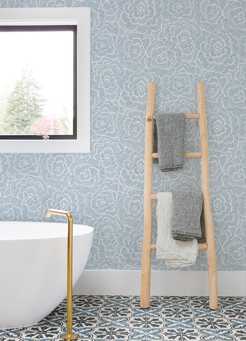 4120-26039 Periwinkle Blue Textured Floral Wallpaper