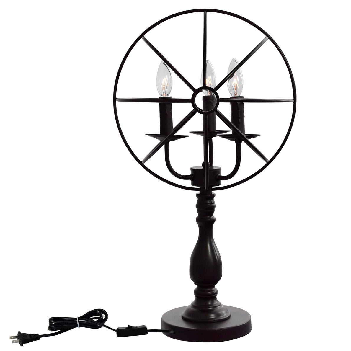 The Arza 3 Light Table Lamp will give your house a cozy, rustic farmhouse feel. This light source features three exposed candelabra lights enclosed in an orbiting open shade. A table lamp that has the silhouette of a traditional three-arm candelabra, this one guarantees you plenty of light and a comfortable, laid-back atmosphere.