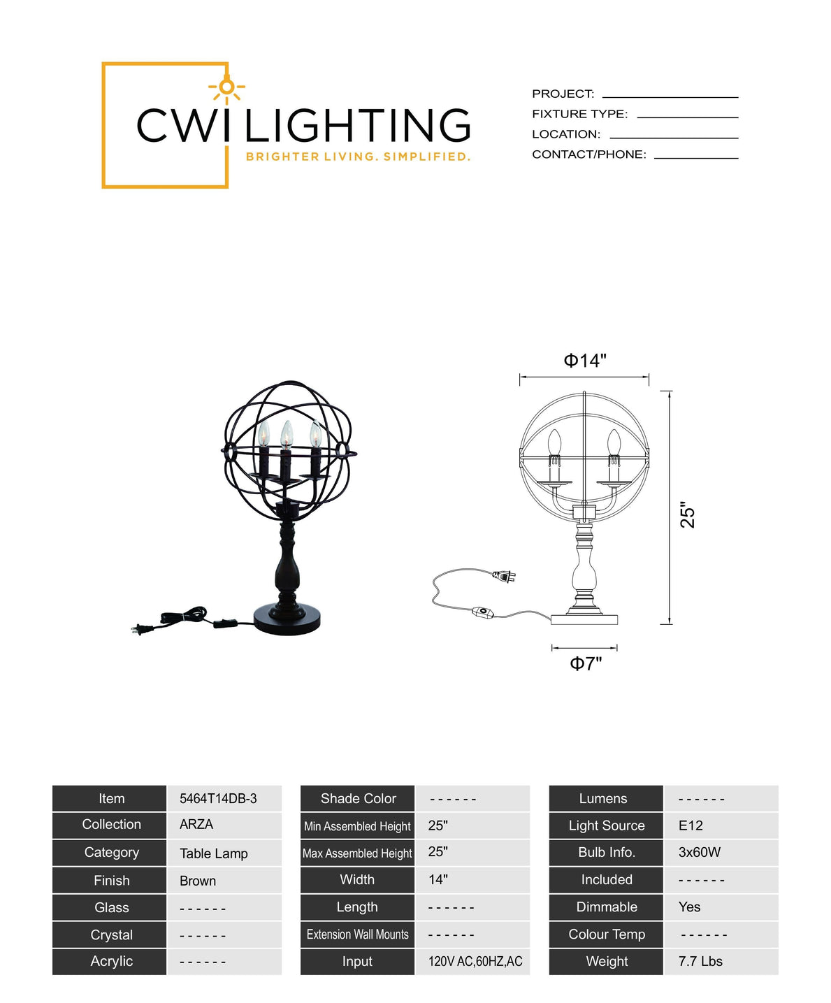 5464T14DB-3 Arza 3 Light Table Lamp With Brown Finish