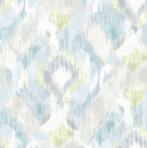 Adorn your walls in a stunning watercolor wash with this abstract ogee pattern. Soft teals, blues, greys, and chartreuse blend harmoniously together. Mirage is an unpasted, nonwoven wallpaper