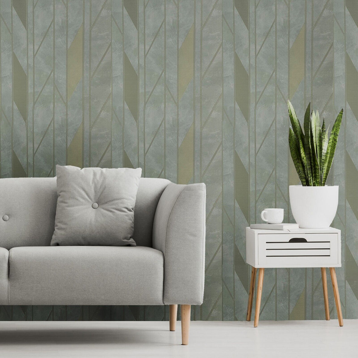 Z44826 Green contemporary geometric lines faux concrete textured Modern wallpaper rolls