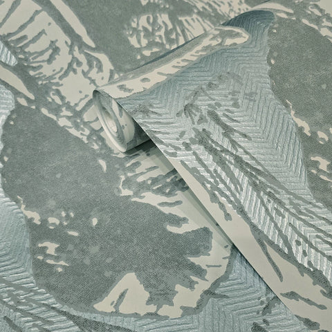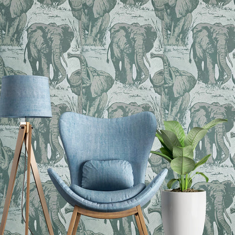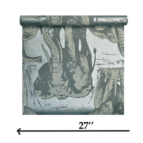 CR22102 Flocking velvet Textured steel blue metallic gray safari elephant wallpaper roll
