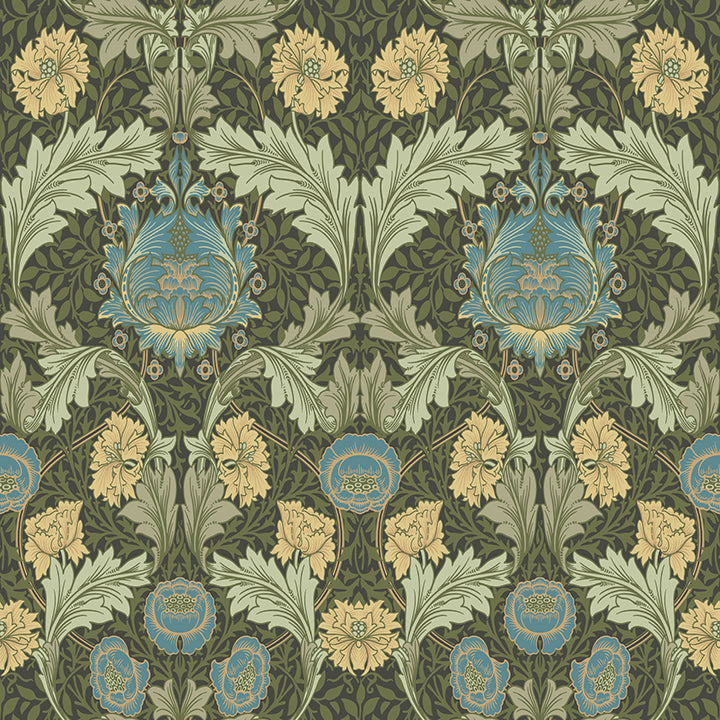 4171-82060 Myrtle Dark Green Floral Ogee Wallpaper