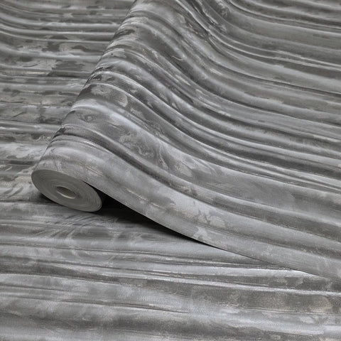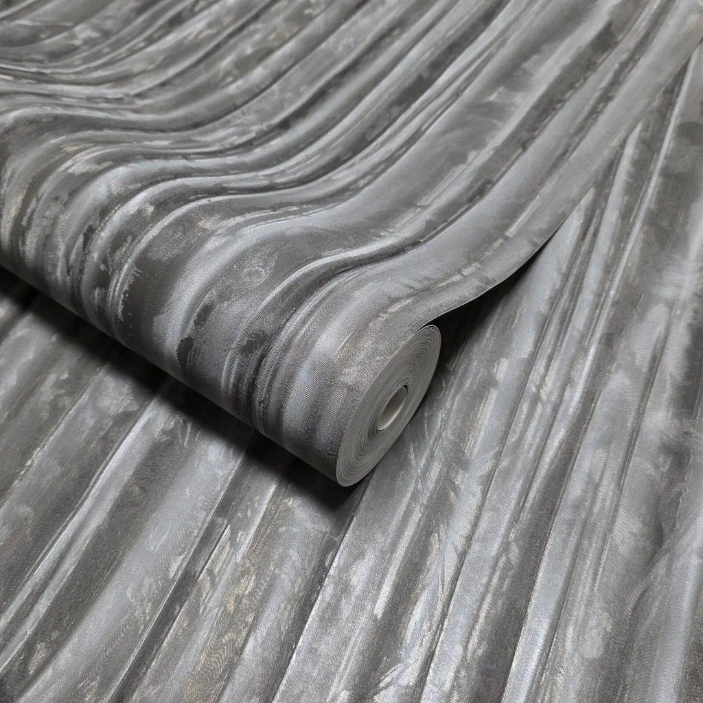 M31928 Modern Dark gray silver metallic faux silk pleated fabric textured Wallpaper 3D