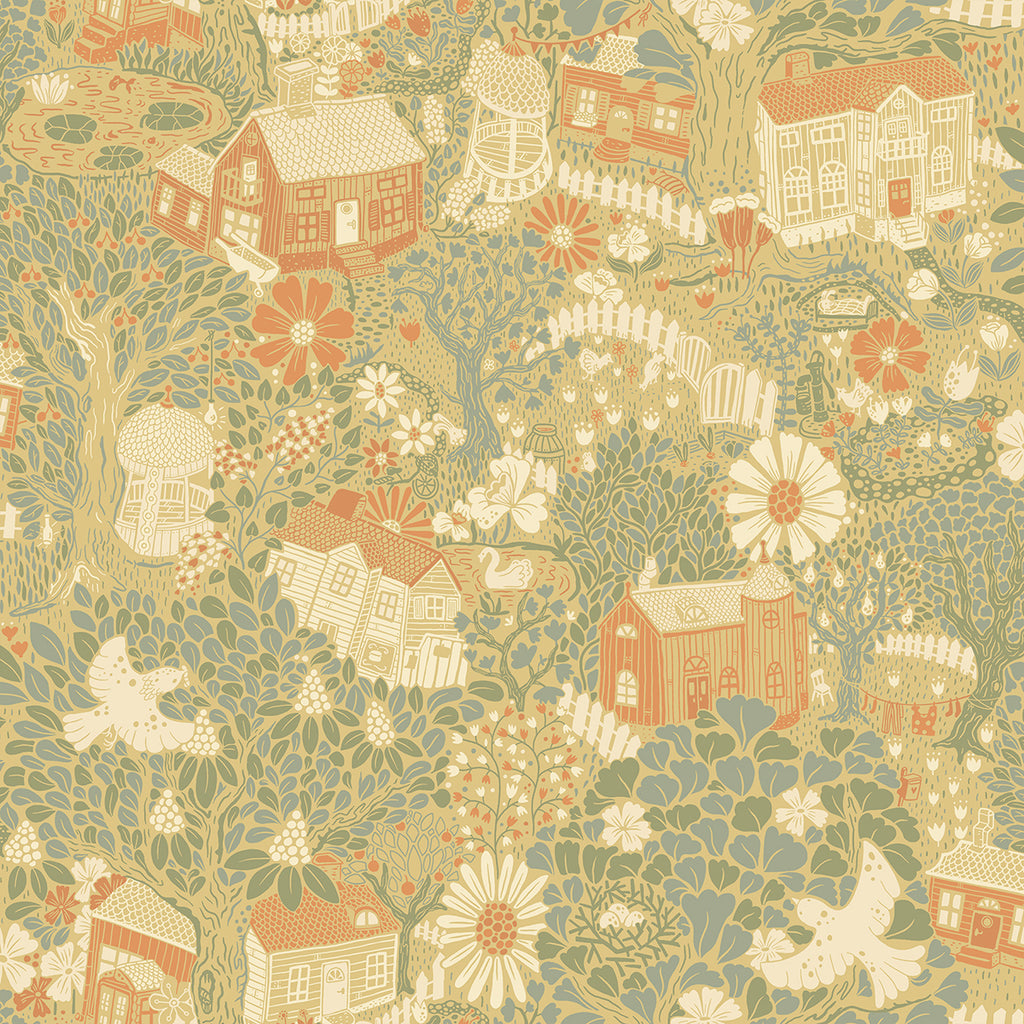4111-63002 Bygga Bo Butter Woodland Village Wallpaper