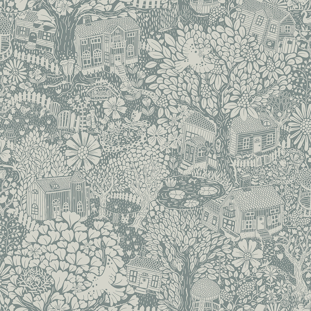 4111-63005 Bygga Bo Blue Woodland Village Wallpaper