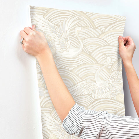 4172-27499 Egret Neutral Tidal Dance Wallpaper