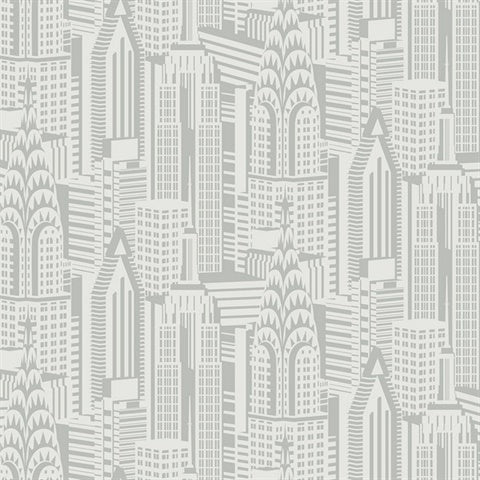DC61507 Manhattan Skyline Silver Wallpaper
