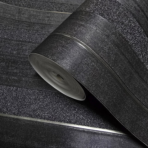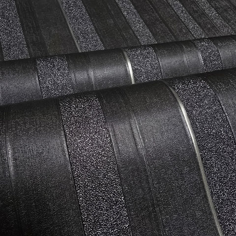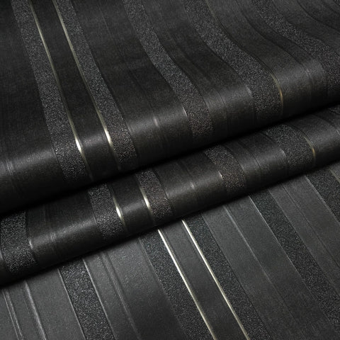 Z64842 Embossed stripes black gold metallic lines striped modern wallpaper textured 3D