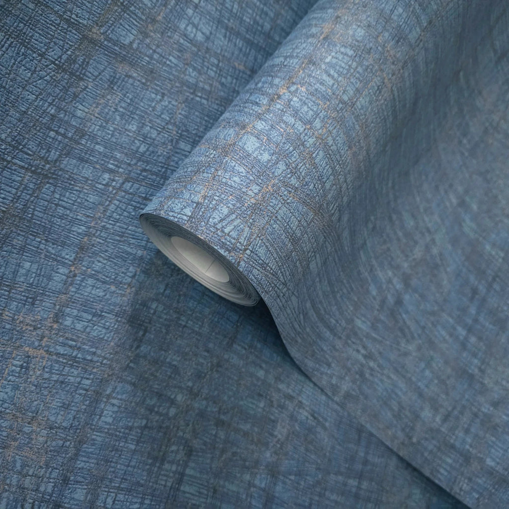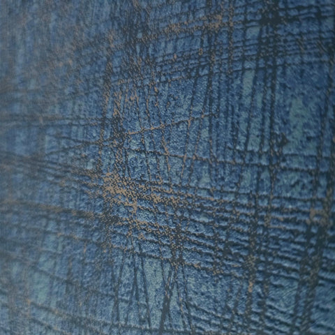53110 Navy blue teal bronze faux fabric texture abstract cross hatched lines wallpaper