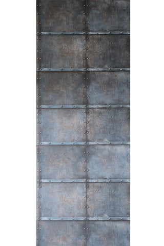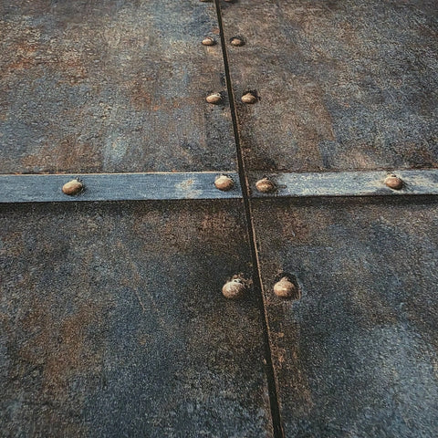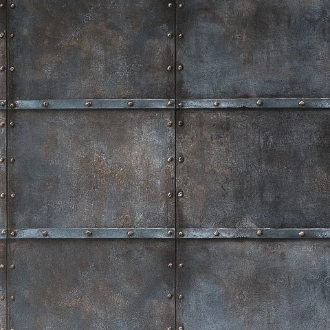 IR50901 Faux metal industrial rusted steel panel plating rusty brown rust blue wallpaper