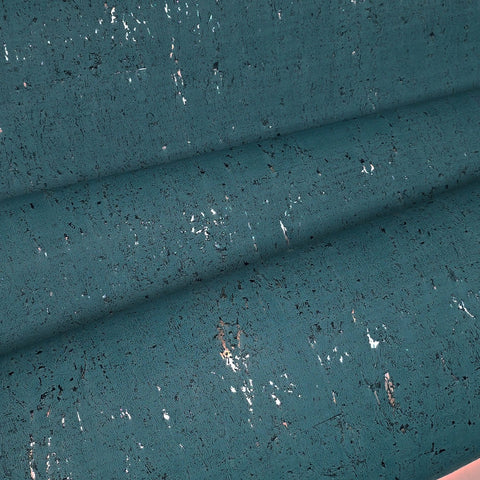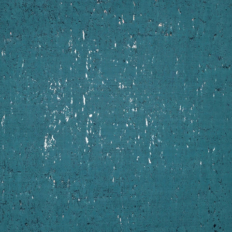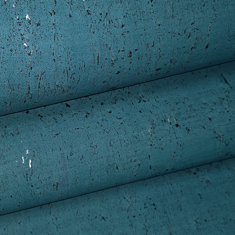 WM019KCS Real natural cork textured matte teal blue silver metallic foil modern Wallpaper
