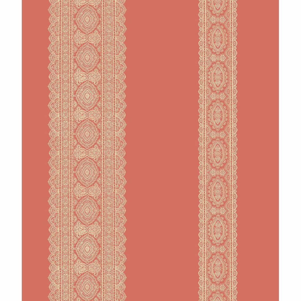 1014-001833 Brynn Coral Paisley Stripe Wallpaper