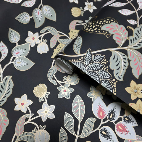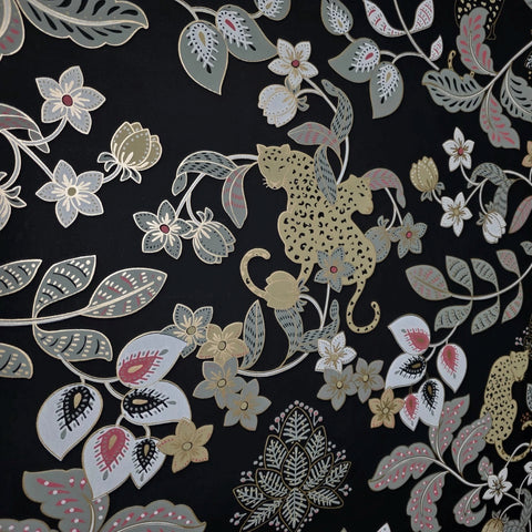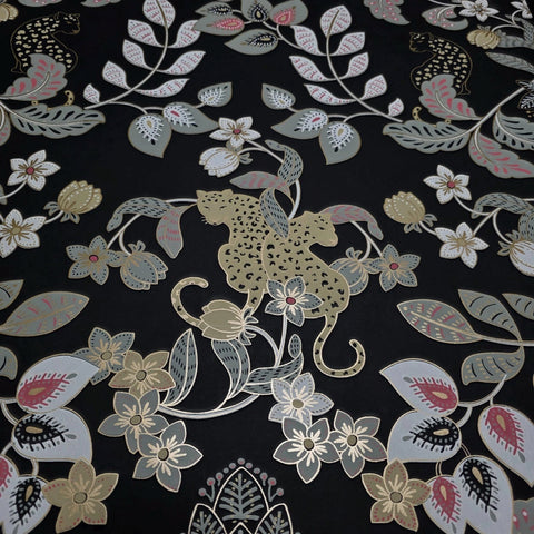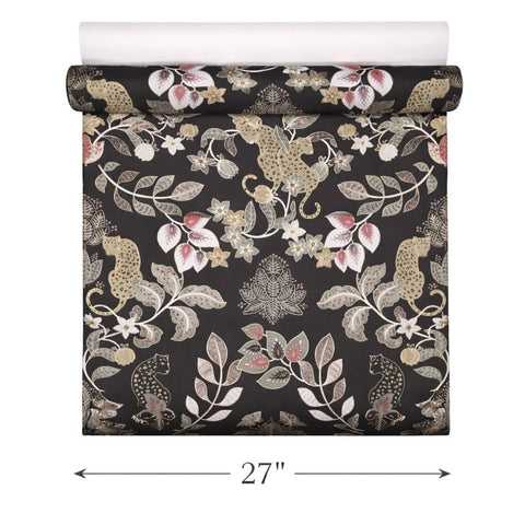 4034-72131 Black gray beige gold metallic Jungle Tropical leaves leopard cheetah Wallpaper