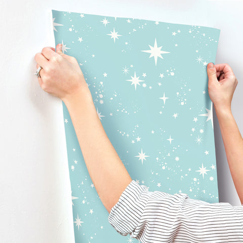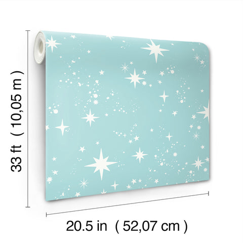 4203-27567 Twinkle Light Blue Starry Skies Wallpaper