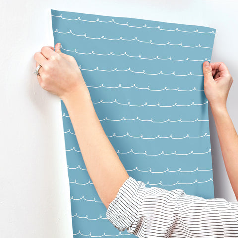 4203-27572 Wiggle Line Blue Stripe Wallpaper
