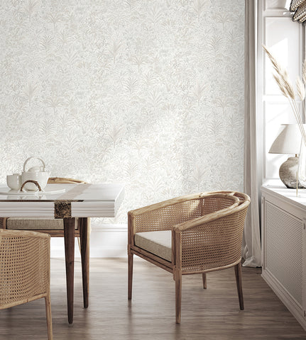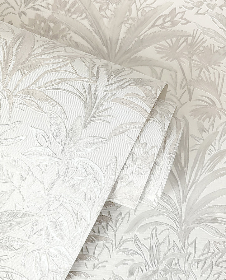 M95677 Meilani White Silver Palm Landscape Wallpaper