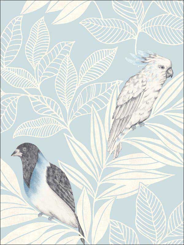 RY30102 Paradise Island Birds Blue Oasis Ivory Wallpaper