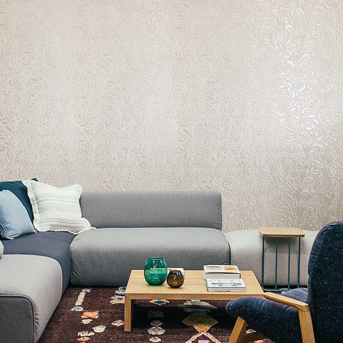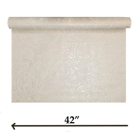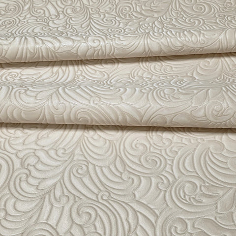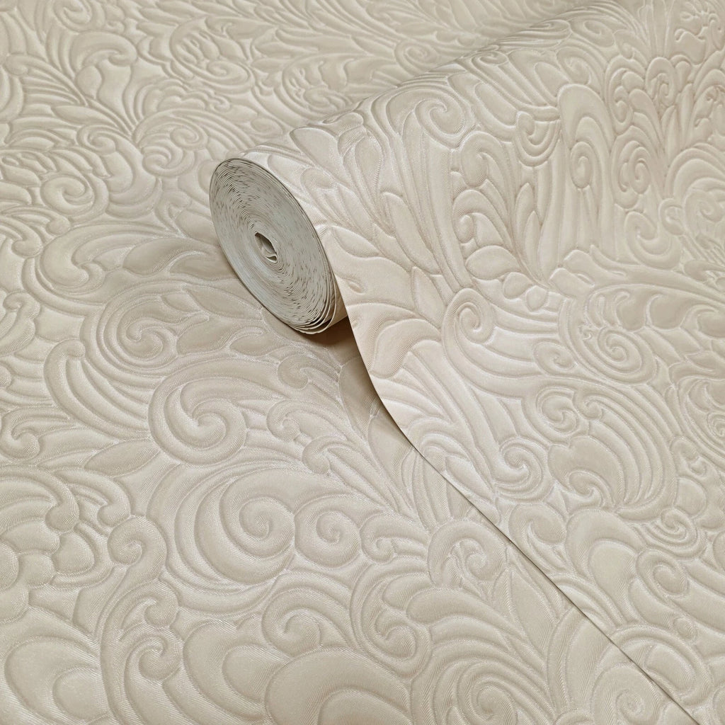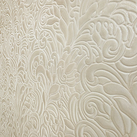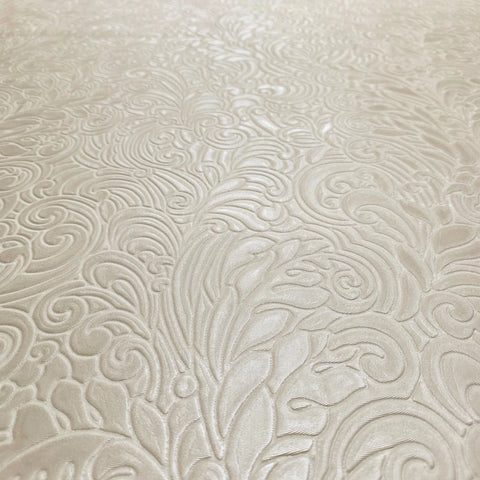 Z64802 Embossed leaf damask heavy textured faux fabric rose beige cream pearl wallpaper