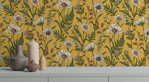 FD43336 Arden Mustard Wild Meadow Wallpaper