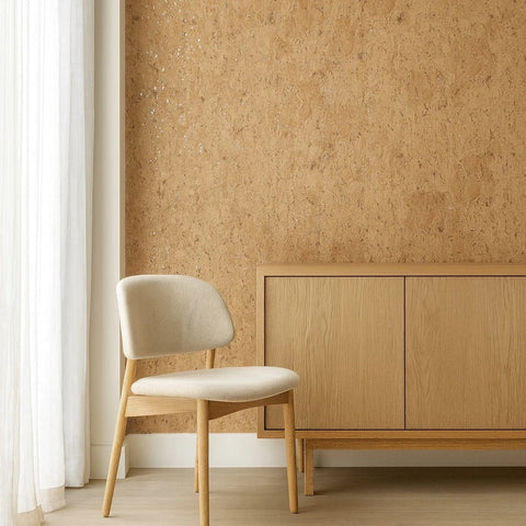 HARVESTED FROM AUTHENTIC CORK BARK, THIS SPECIALTY WALLCOVERING IS AVAILABLE IN A RANGE OF COLORS FROM A NATURAL STATE TO MATTE AND METALLIC COLORATIONS.