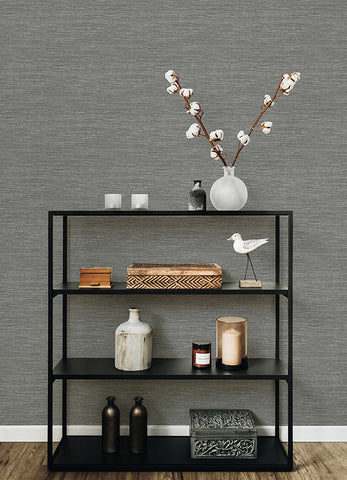 4066-26560 Malin Grey Faux Grasscloth Wallpaper