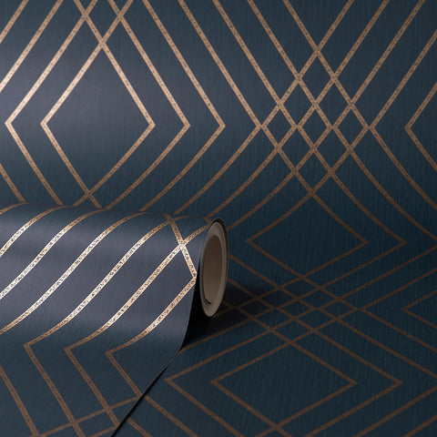 FD42605 Shard Navy Trellis Wallpaper