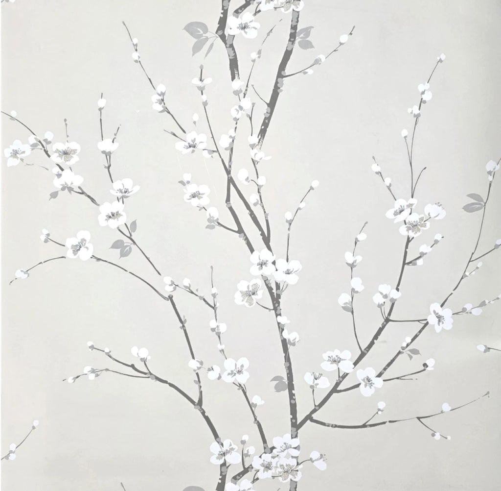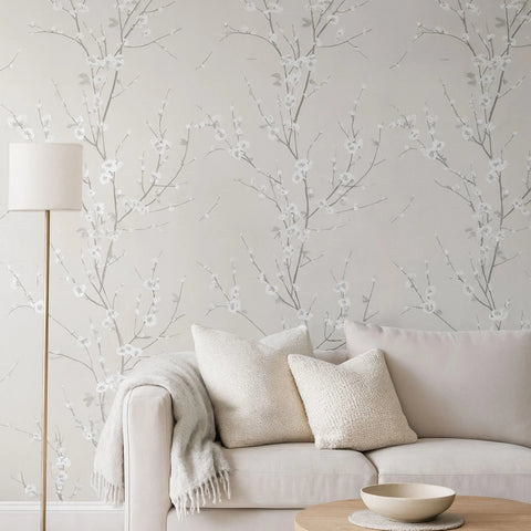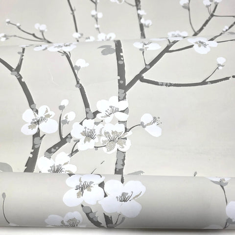 2927-81805 Taupe beige gray white watercolor cherry blossom branches Chinoiserie wallpaper