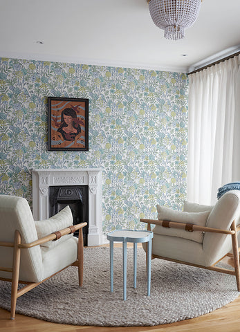 4148-27413 Goldfinch Aqua Birds and Blooms Wallpaper